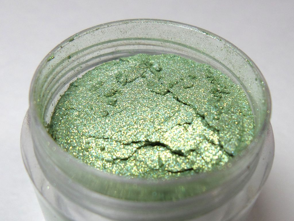 Ярко-зеленый тон с зеленым отливом и мерцающими золотыми частичками