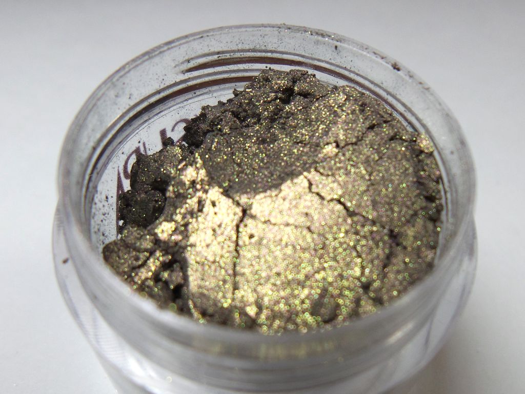 Коричнево-зеленый цвет с насыщенно фиолетовым отливом и золотыми частичками