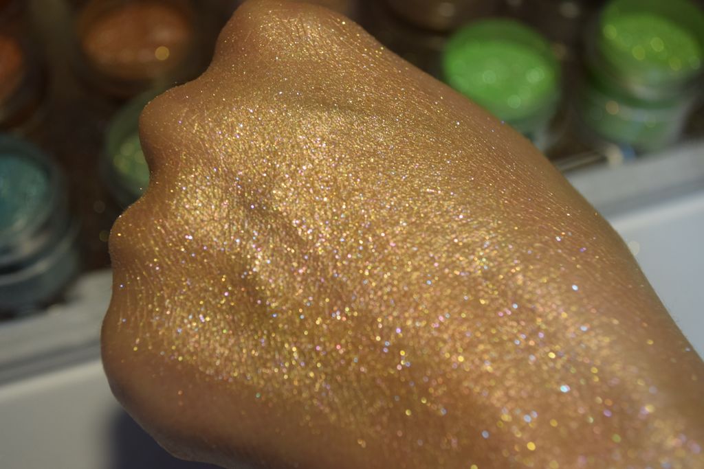 Крупношиммерная слюда с мультицветным отливом на основе розового золота.