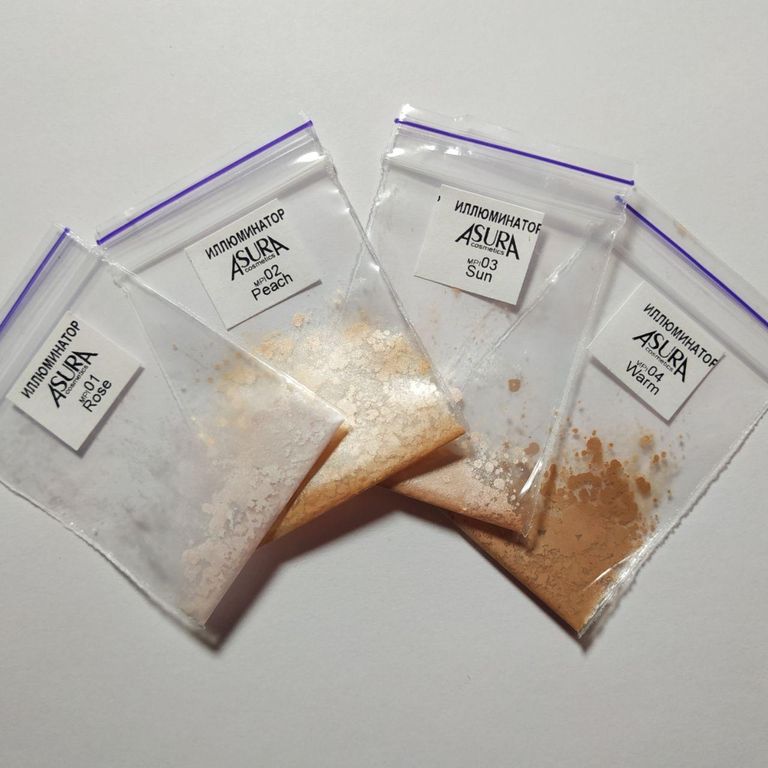 Полный комплект тестеров серии Минеральный иллюминатор. 4 штуки - по одному образцу каждого оттенка. Каждый образец упакован в зип пакет в количестве, достаточном для 1-2 тестовых нанесений продукта.